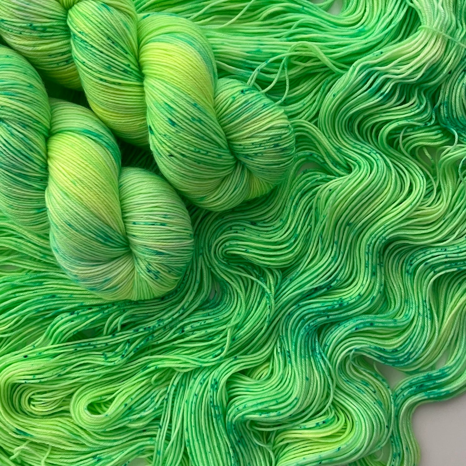毛糸は手染めのため、同じタイミングで染色された毛糸、再販商品でも、かせごとに色の入り方が違っています。